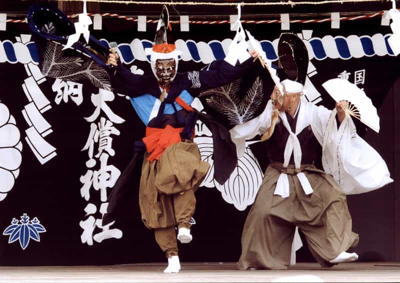 昭和51年に岳神楽とともに「早池峰神楽」として、国指定重要無形民俗文化財(第1号)に指定され、平成21年9月にはユネスコ無形文化遺産にも登録された、大償神楽の奉納。新年のお祝いとして、優雅な舞の大償神楽が奉納される。