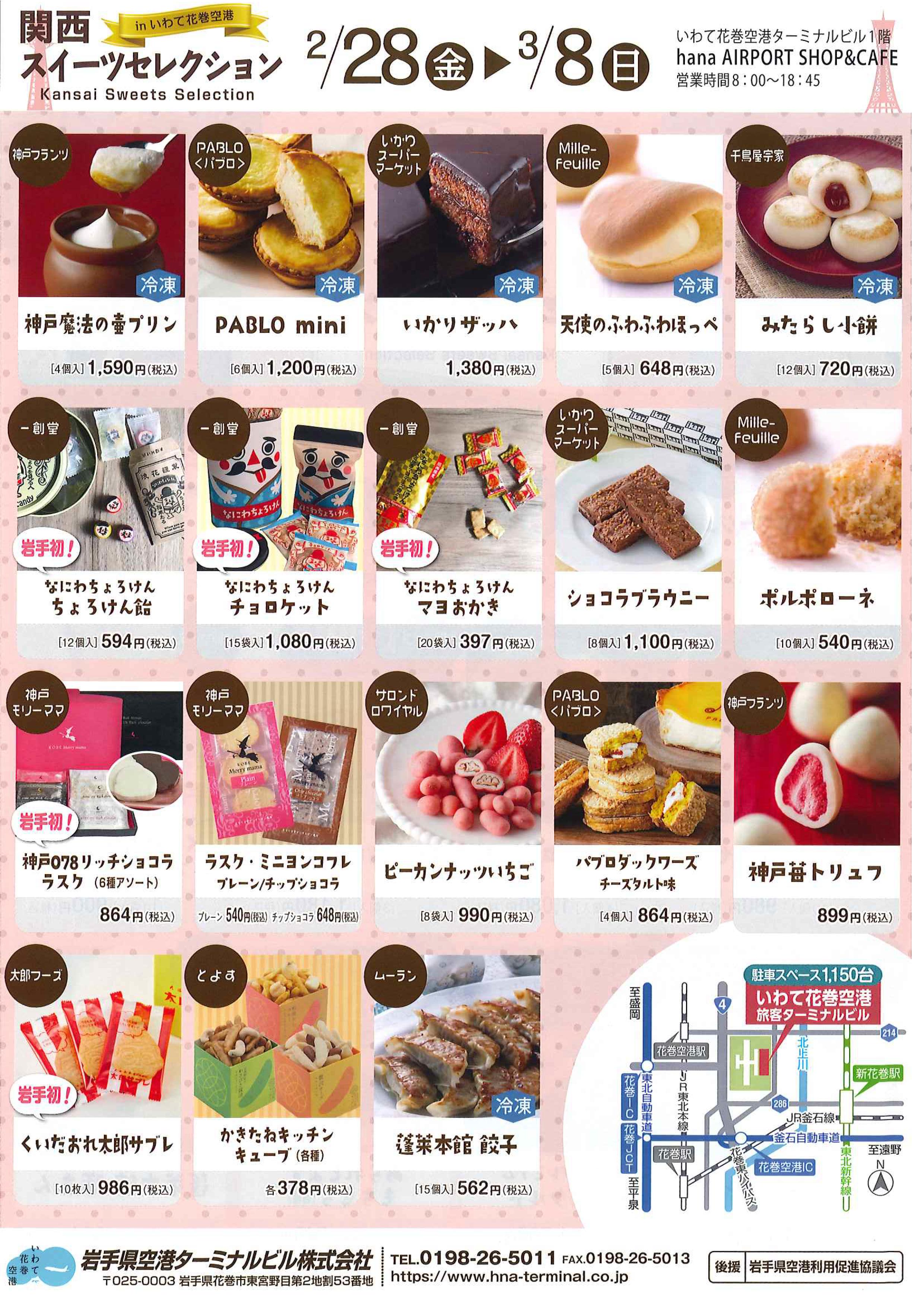 - いわて花巻空港ターミナル1階hana AIRPORT SHOP&CAFE(岩手県花巻市東宮野目第2地割53番地)