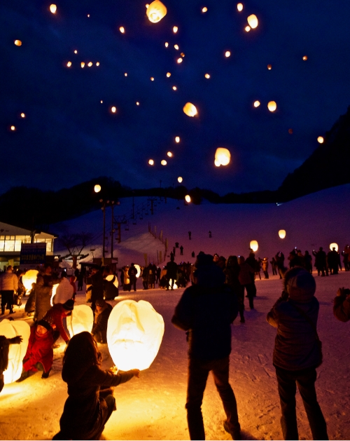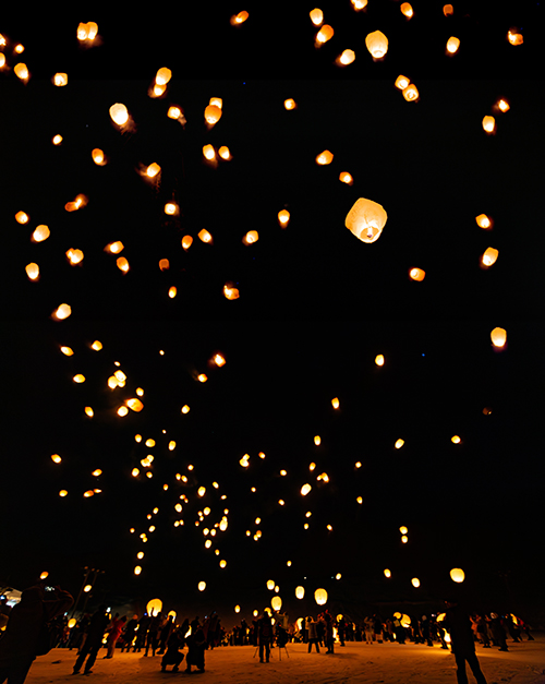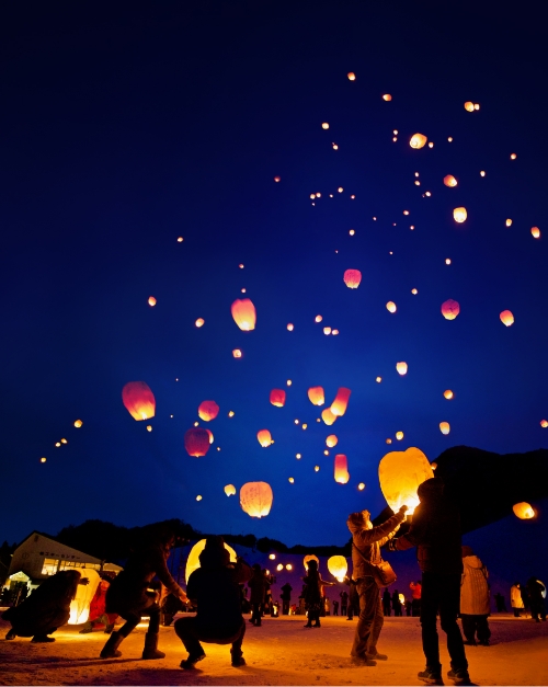 花巻の夜空に一斉にあげる冬限定のイベントです。