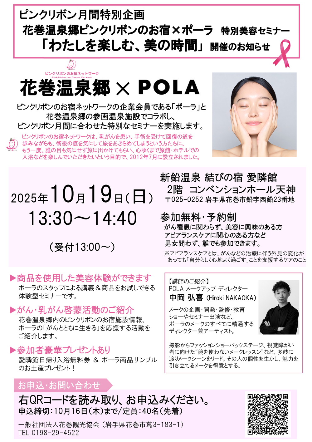 ■花巻温泉郷の「ピンクリボンのお宿ネットワーク」参画施設にて、