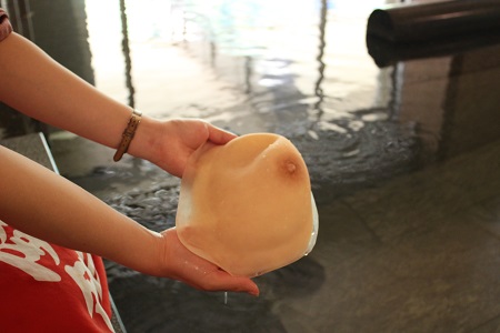 人工乳房の入浴テストを行う「おっぱいリレー」を実施します。